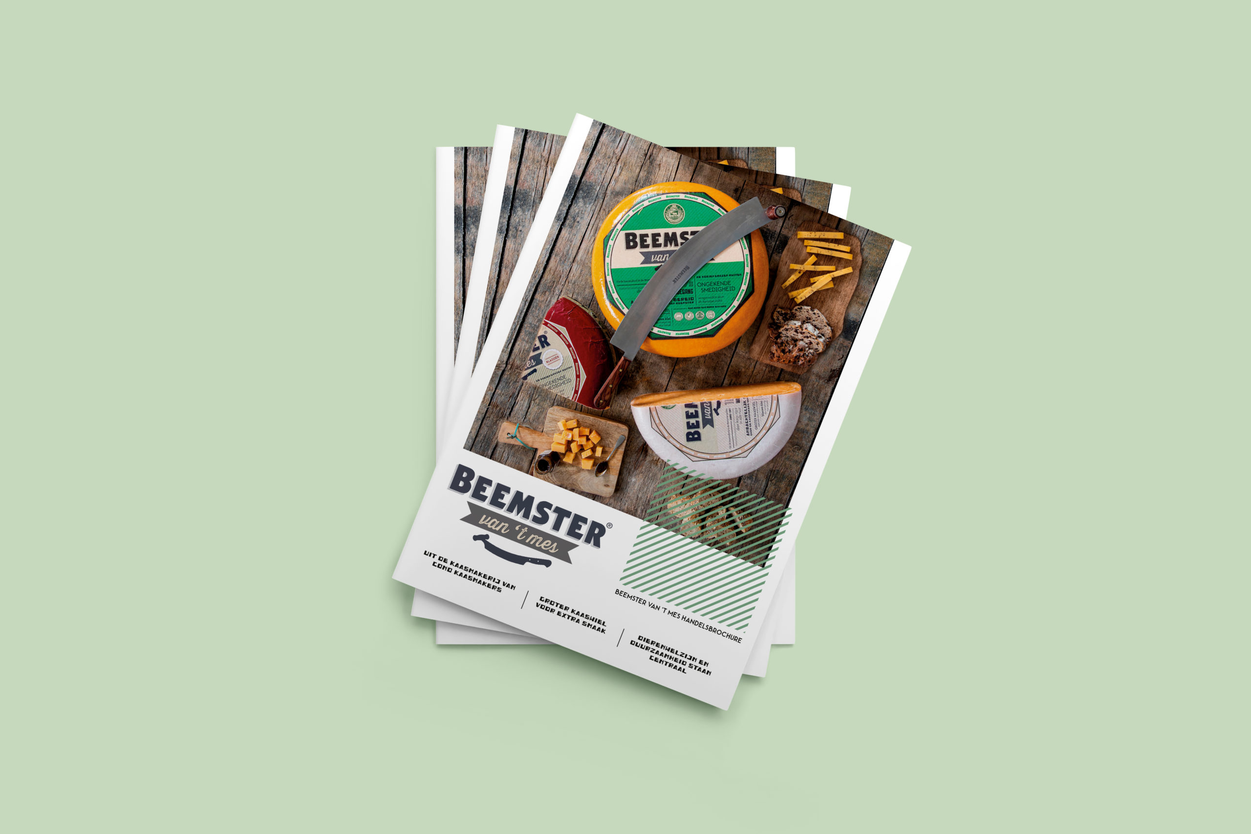 Voor het merk Beemster van ‘t mes mocht ik een een brochure ontwikkelen gericht op B2B. Een interessante opdracht waarbij er goed gekeken moest worden hoe de hoeveelheid informatie op een visueel aantrekkelijke manier kon worden weergegeven.
